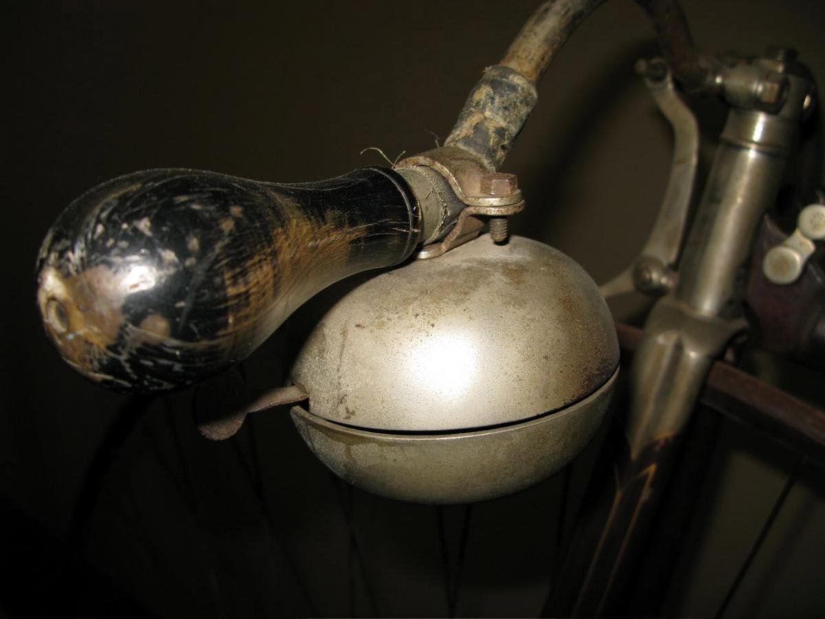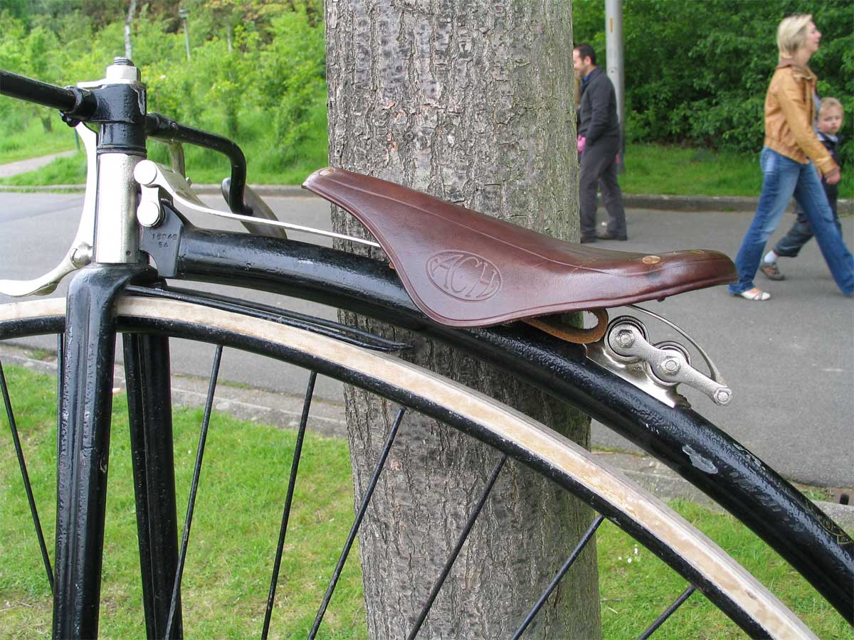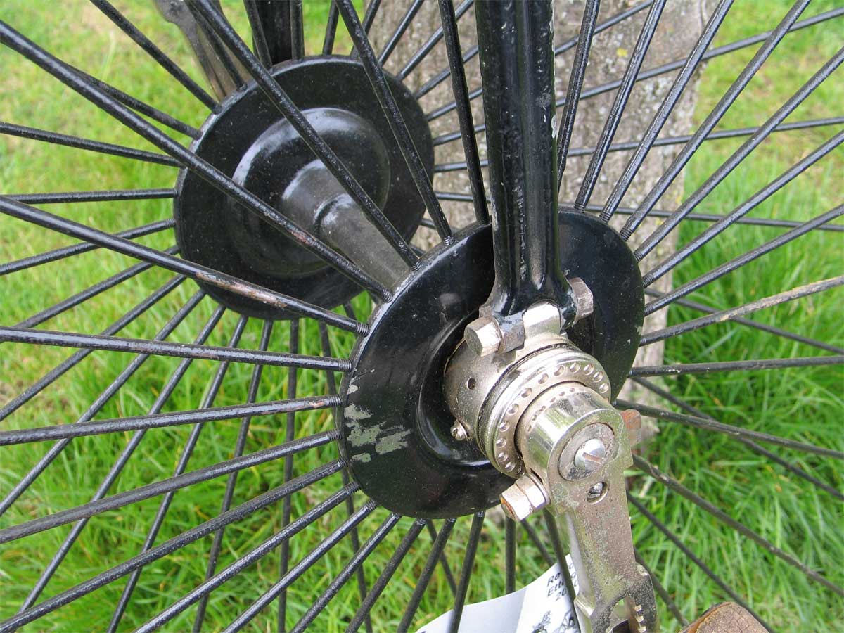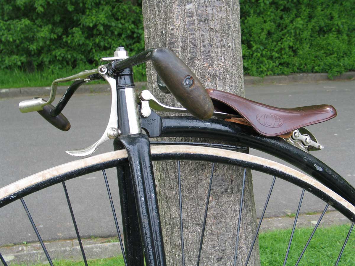 It also features the first model of the Singer detachable handlebars. With its fluted hollow forks, double ball bearings at the front and single ball bearings at the rear, it was the top of the line Singer in those days. You can find detailed pictures of these Singer-bearings in my section about Matchless.